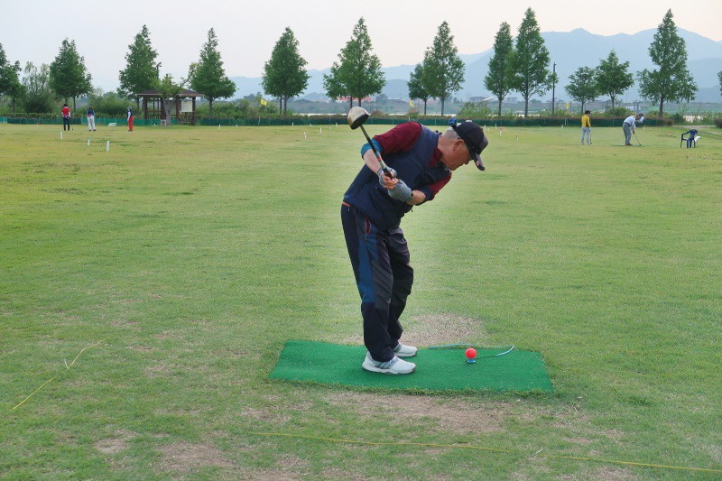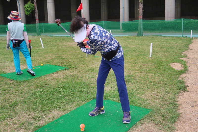 파크 골프는 공을 치는 채 하나와 공 한 개로 운동할 수 있어 비용이 적게 들고 아침부터 저녁까지