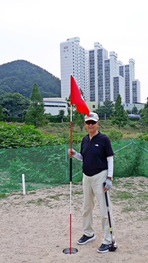 초보자가 해운대 파크 골프장 5홀에서 행운의 hall in one 짜릿한 맛 만끽하다.
