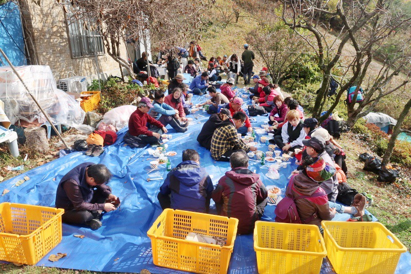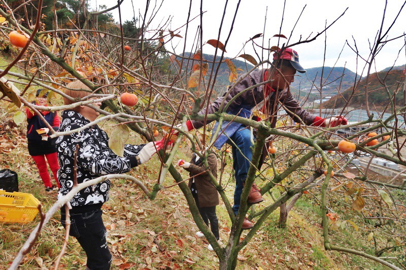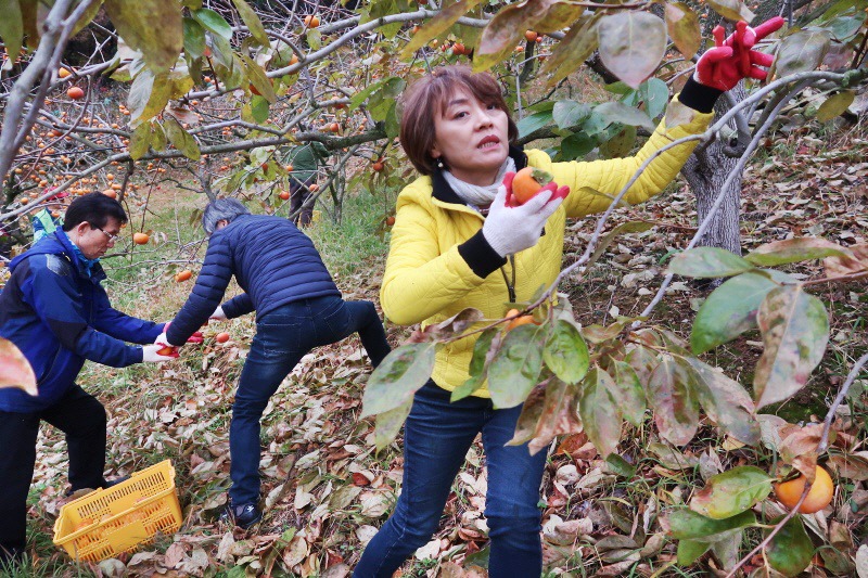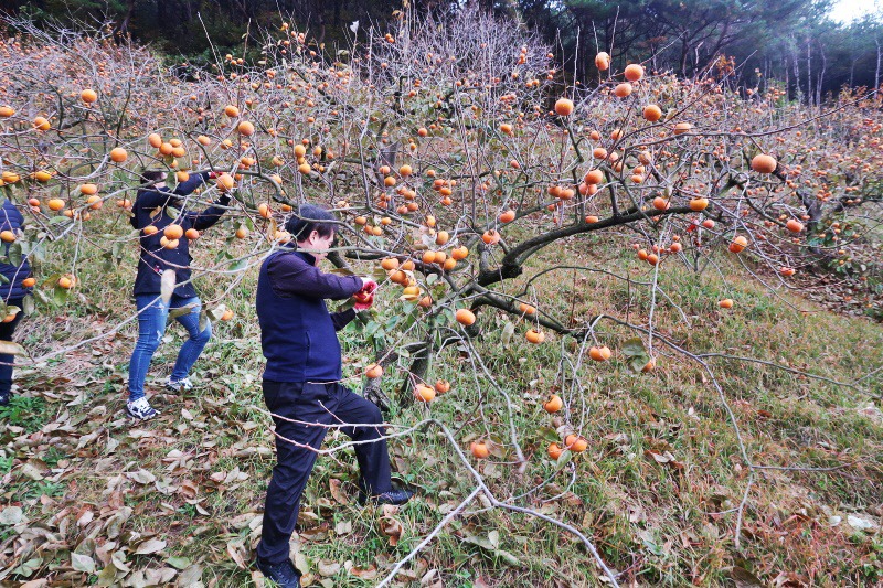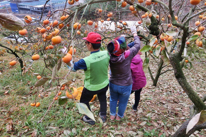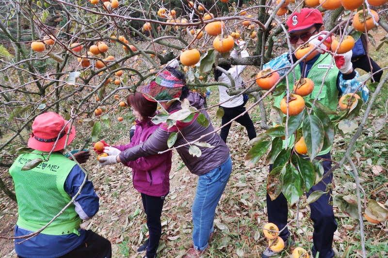 감사드립니다. 수확한 단감은 11월 20일 해운대역 광장에서 무료급식에 제공된다.