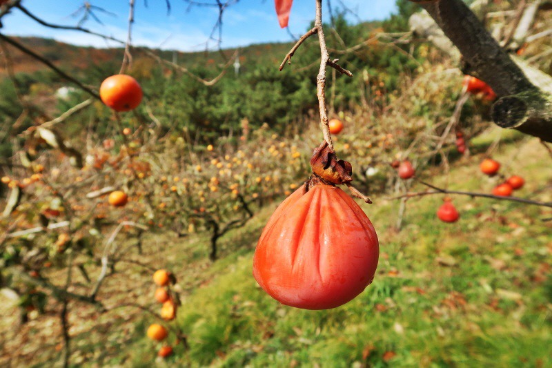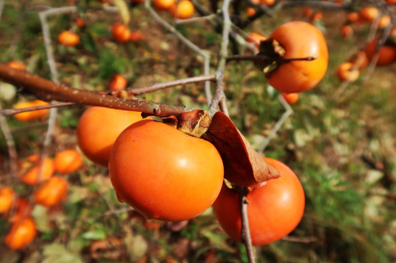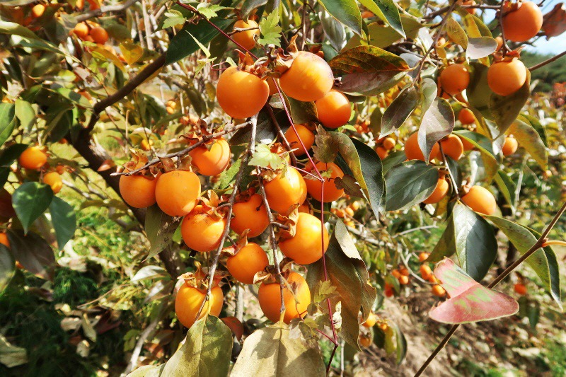 감의 무게를 못 이겨 가지가 휘어져 부러질 정도이다.