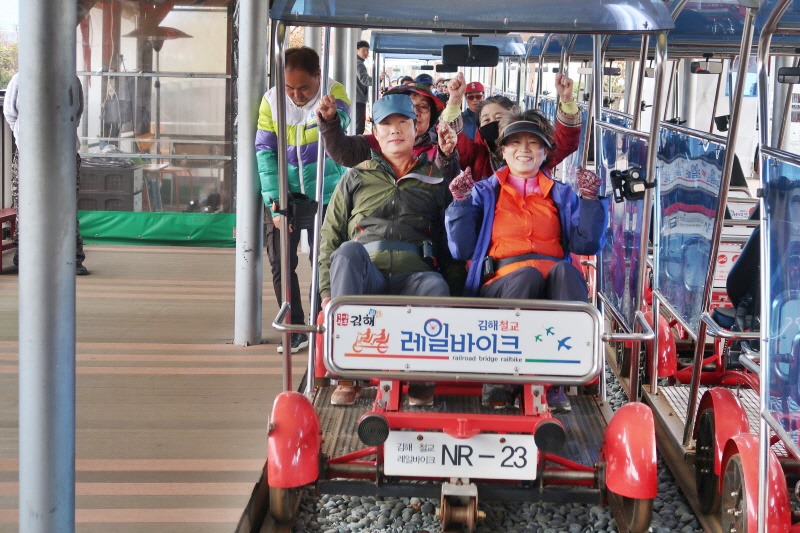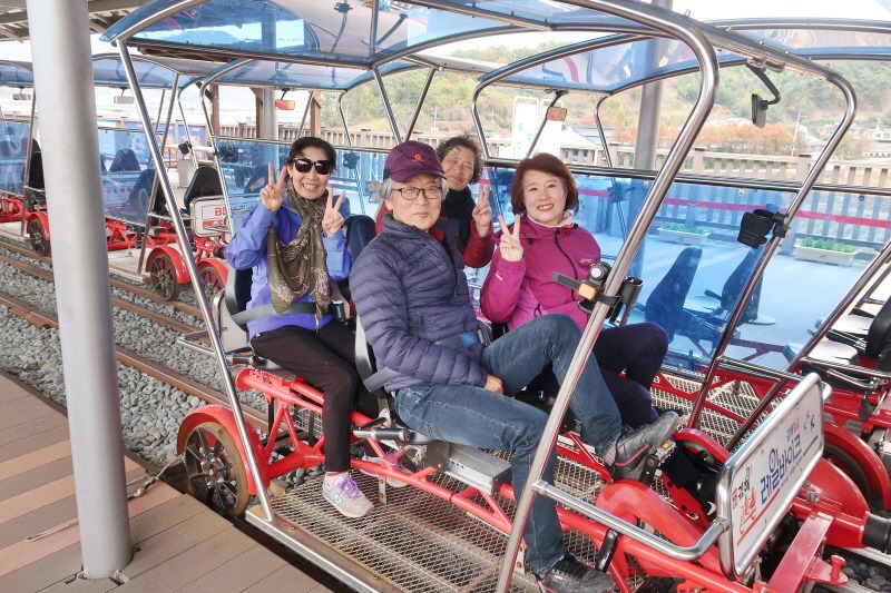 감 따는 작업을 마치고 김해 레일바이크로 이동