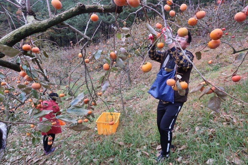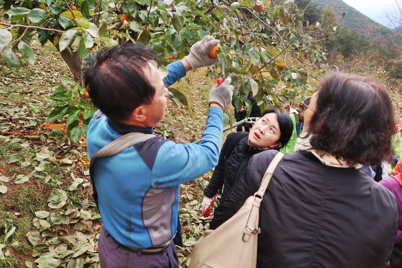 감 따는 체험은 평생 처음이라고 하면서 즐겁게 작업을 하다.