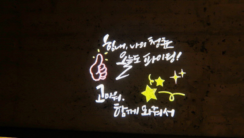 한결재단이 준비한 비빕밥과 수육 등을 안주로 한 잔 술 꿀맛이다. 잔치마당이다.