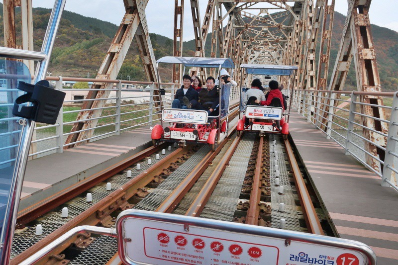 전국의 많은 레일바이크가 있지만, 철교를 횡단하며 아름다운 강변을 달리는 레일 바이크가 이곳이 유일하다.