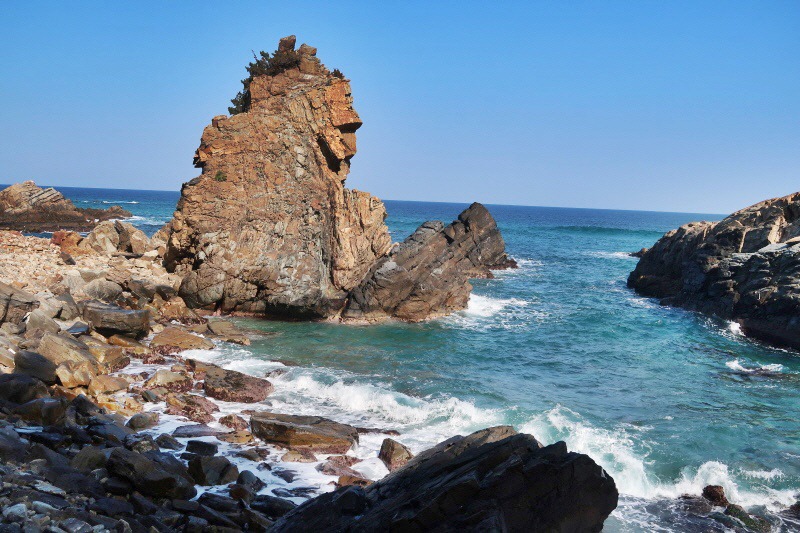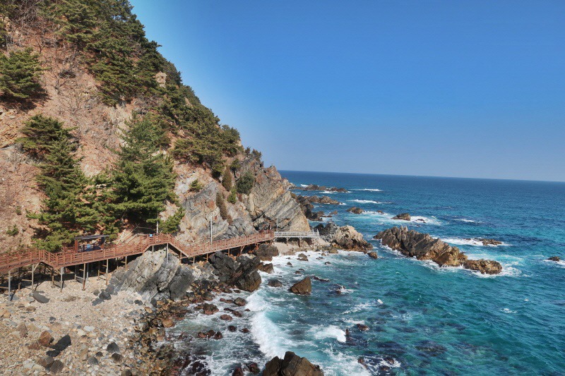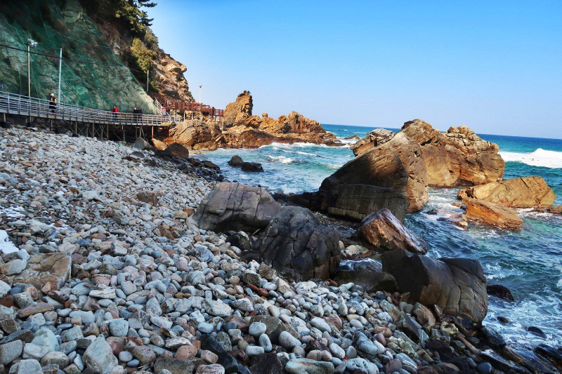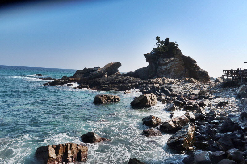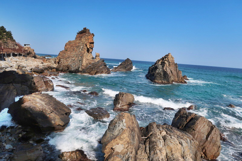 동해의 푸른물결과 웅장한 기암괴석 석화 등 천혜의 비경을 감상할 수 있다.
