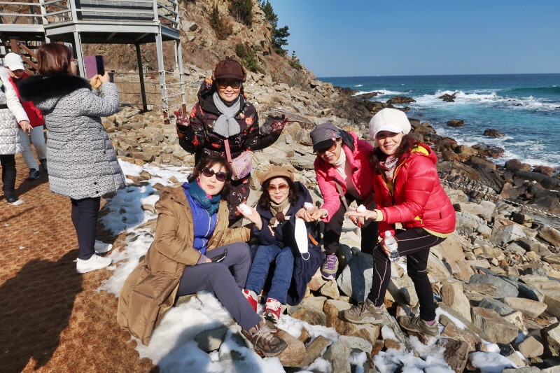 부산에서 출발할 때는 설경을 기대했는데 최근 날씨가 따뜻하여 눈이 녹아 없다