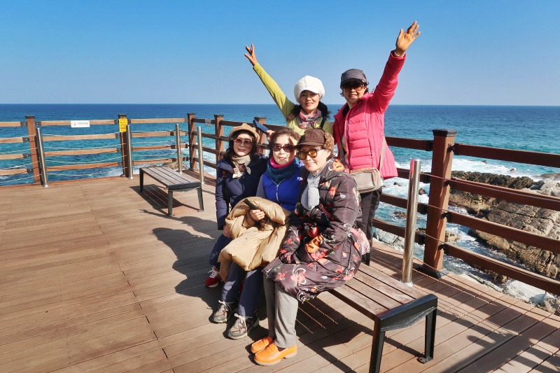 쪽빛바다를 배경으로 병풍처럼 이어지는 절벽을 휘감아 도는 탐방로는 이어져 발밑에서