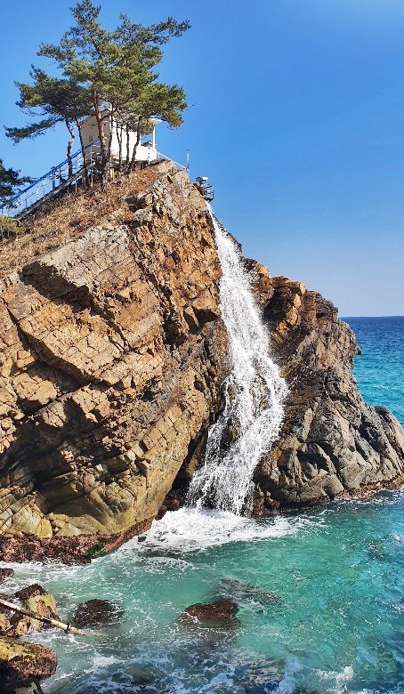 바다 부채길 끝지점에 인공폭포를 조성하여 이색적이다.