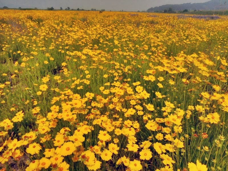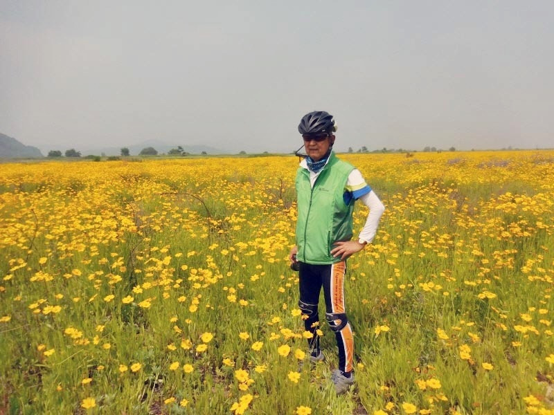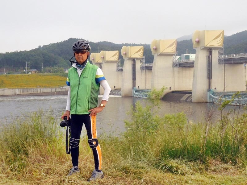 금강상류는 강폭이 좁은데 하류로 내려 올수록 넓어진다. 둔치에는 노란 금계국이 장관을 이루고 있고, 자전거길은 둔치 사이로 나 있어 꽃들을 감상하면서 유유자적하게 달린다.
