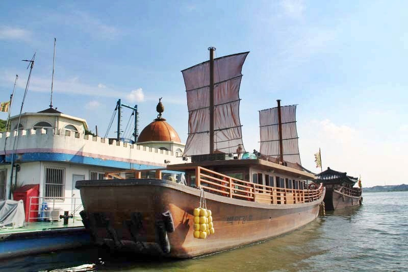 백마강에서 유람선(황포돛대)를 탈수 있는 곳은 구드래선착장과 고란사 매표 두곳이다. 2014. 7. 1 고란사 선착장에서 출발 비록 달밤은 아니지만, 여범과 함께 '백마강 달밤' 노래를 불러었던 추억이 새록새록하다.
