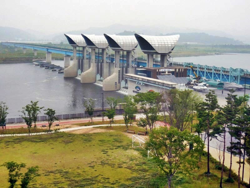 제일 먼저 마주친 것은 공주보이다. 봉황이 금강을 지키는 형상으로 길이가 280m이다. 봉황의 머리와 힘찬 날개짓, 그리고 여의주처럼 생긴 교량, 낙하분수를 이용한 날개와 꼬리형상이다.