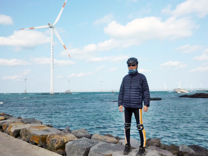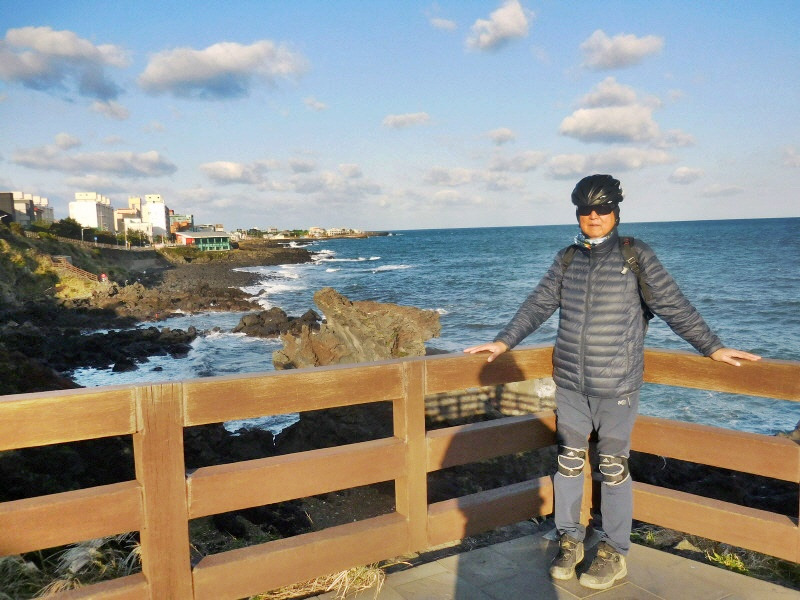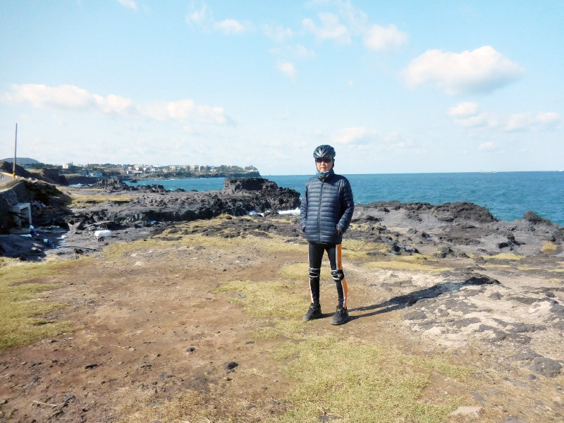 바다는 푸른물결이 일렁이고 발아래 무진장 펼쳐진 바다를 바라보니, 제주 세상사 모든것을 말끔히 씻어내는 기분이다. 제주도를 7번 와서 한라산 백록담 등산(4번) 제주 올레길 도보여행(2번), 7번째 자전거로 라이딩이다.