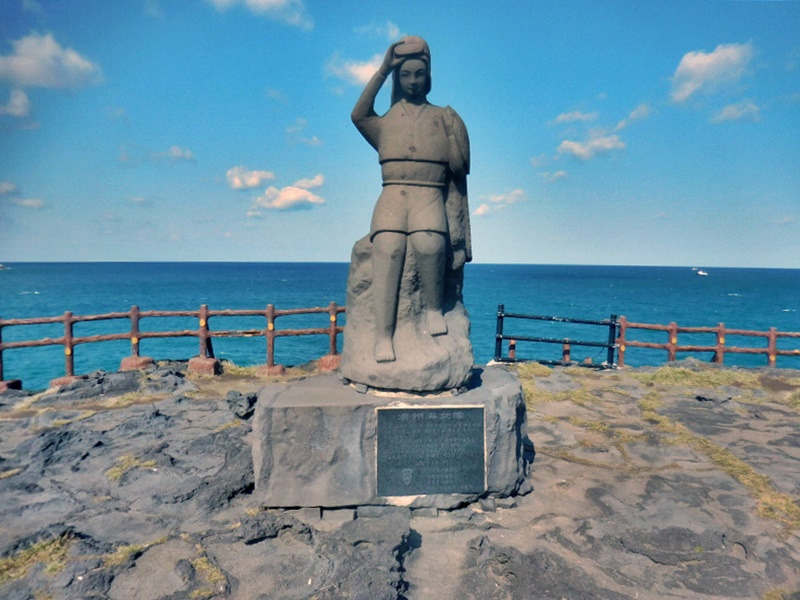 해변가에 높이 3.3m의 해녀상은 물질을 마치고 뭍으로 나오는 해녀를 보는 듯하다. 제주의 삼다(三多) 중의 하나인 돌이 많다는 것이 실감이 간다.