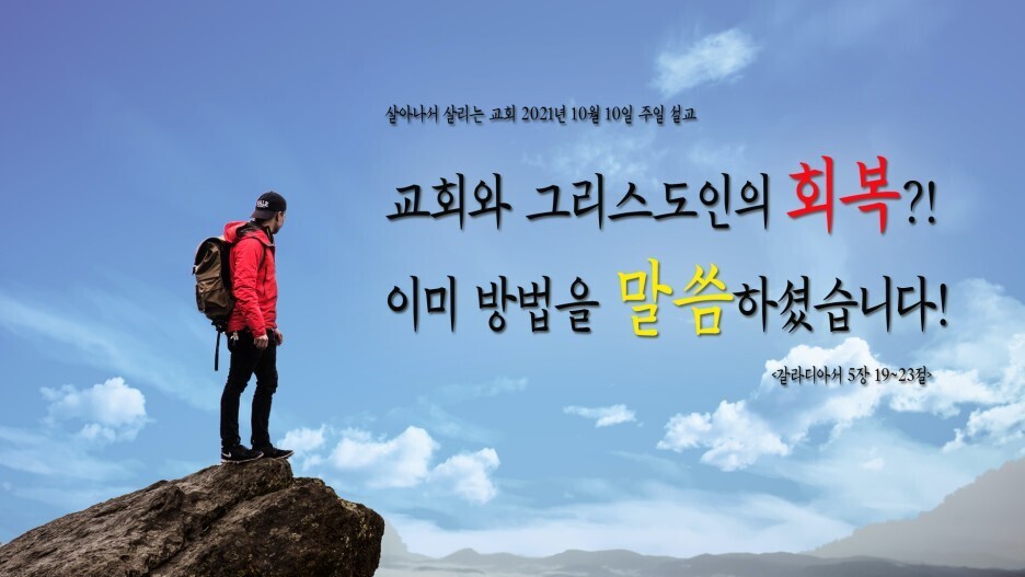 마지막으로 예수님의 질문에 대해서 답을 하고 있는 듯 보이면서, 동시에 회복의 길을 선택하여 고군분투하고 있는 교회를 그리스도인들을 우리들의 어깨를 두드리며 독려하는 바울의 선포를 나누면서 설교를 마무리하도록 하겠습니다. 10월 10일 주일 남은 시간으로부터, 시작된 한 주간도 모두 '하나님의 전신갑주', 주 예수 그리스도로, 말씀으로, 옷을 입고 ‘회복하여’, ‘회복된 후’에 해야 할 일들을 멋지게 행하며 살아가시길 축복합니다. 그래서 모든 이들을 풍족하게 해 줄 성령의 열매를 가득 맺게 되시길 간절히 소망해 봅니다.
