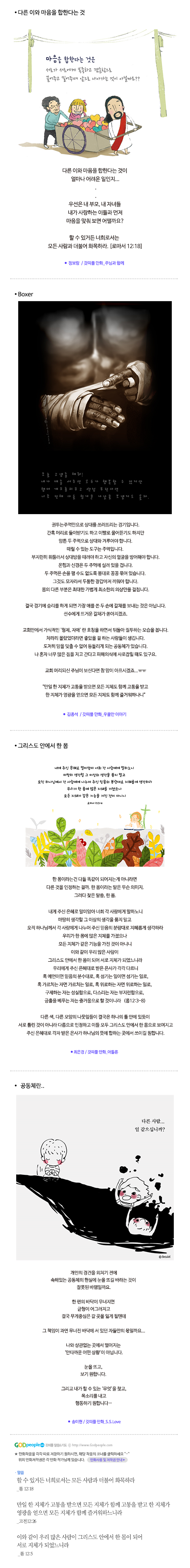 형제 여러분, 나는 우리 주 예수 그리스도의 이름으로 여러분에게 호소합니다. 여러분은 모두 의견을 통일시켜 갈라지지 말고 같은 생각과 같은 뜻으로 굳게 단합하십시오. <고린도전서 1장 10절, 공동번역>