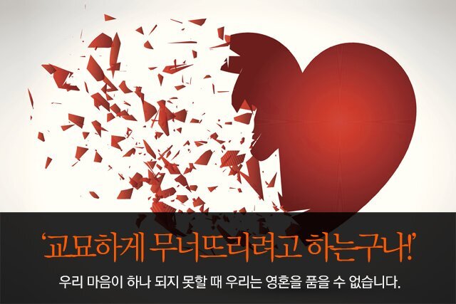 하나된 '하나님의 말씀'을 사용하셔야 합니다. 그리고 이 '하나님의 말씀'은 언제나 사랑이란 그릇에 담아야 합니다. 사랑이야말로 하나님의 말씀으로 하나가 되기 위해 우리 모두가 소유해야 할 첫번째입니다. 하나님의 말씀은 사랑으로 보여지고, 사랑으로 실천되어지고, 사랑으로 회자되어 집니다.