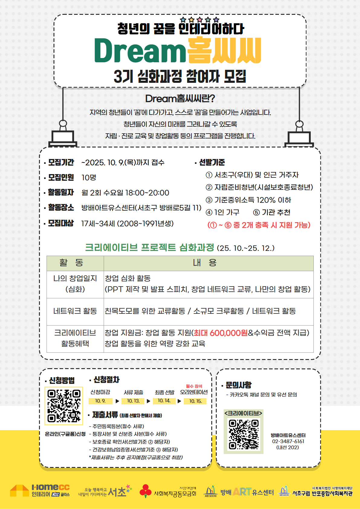 2025년 Dream홈씨씨 3기 심화과정 참여 청년 모집