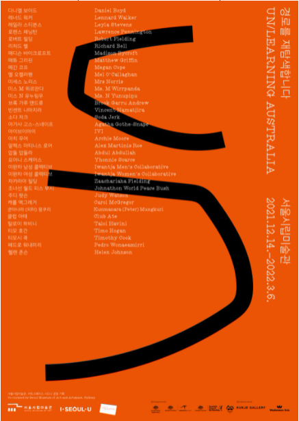 《경로를 재탐색합니다 UN/LEARNING AUSTRALIA》는 한국과 호주의 수교 60주년을 기념하는 프로젝트로 시작되었습니다. 전시를 준비하는 과정에서 나누었던 사유의 교류는 우리가 알고 있다고 혹은 무지하다고 여겼던 것들에 대한 자기반성과 비판적 사고를 풀어내는 토대를 마련해 주었습니다. 전시에서 선보이는 작품들 또한 세대와 문화, 인종과 젠더를 아우르는 공동체와 이들 간의 상호 배움이 무엇보다 중요함을 일깨워 줍니다. 이번 전시로 촉발된 대화가 호주 본래의 면모를 고찰하는 다양한 관점은 물론, 이를 한국의 맥락 또는 다양한 관객과 연결 짓는 기회를 제공하기를 기대합니다. 이러한 재탐색을 통해 틀에 박힌 경계를 벗어나 우리가 누구이며, 무엇이 되길 바라는지 인식하고 이해하는 데 보탬이 되기를 바랍니다.