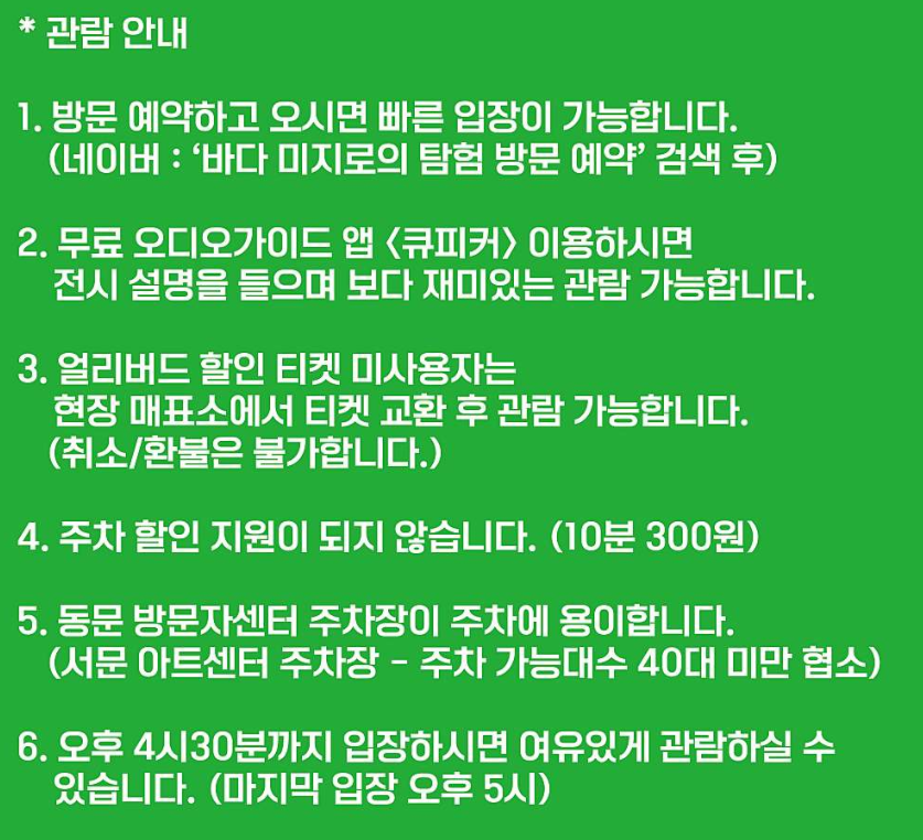 - 시간 : 월~일 오전 10시 ~ 오후 6시 (연중무휴)