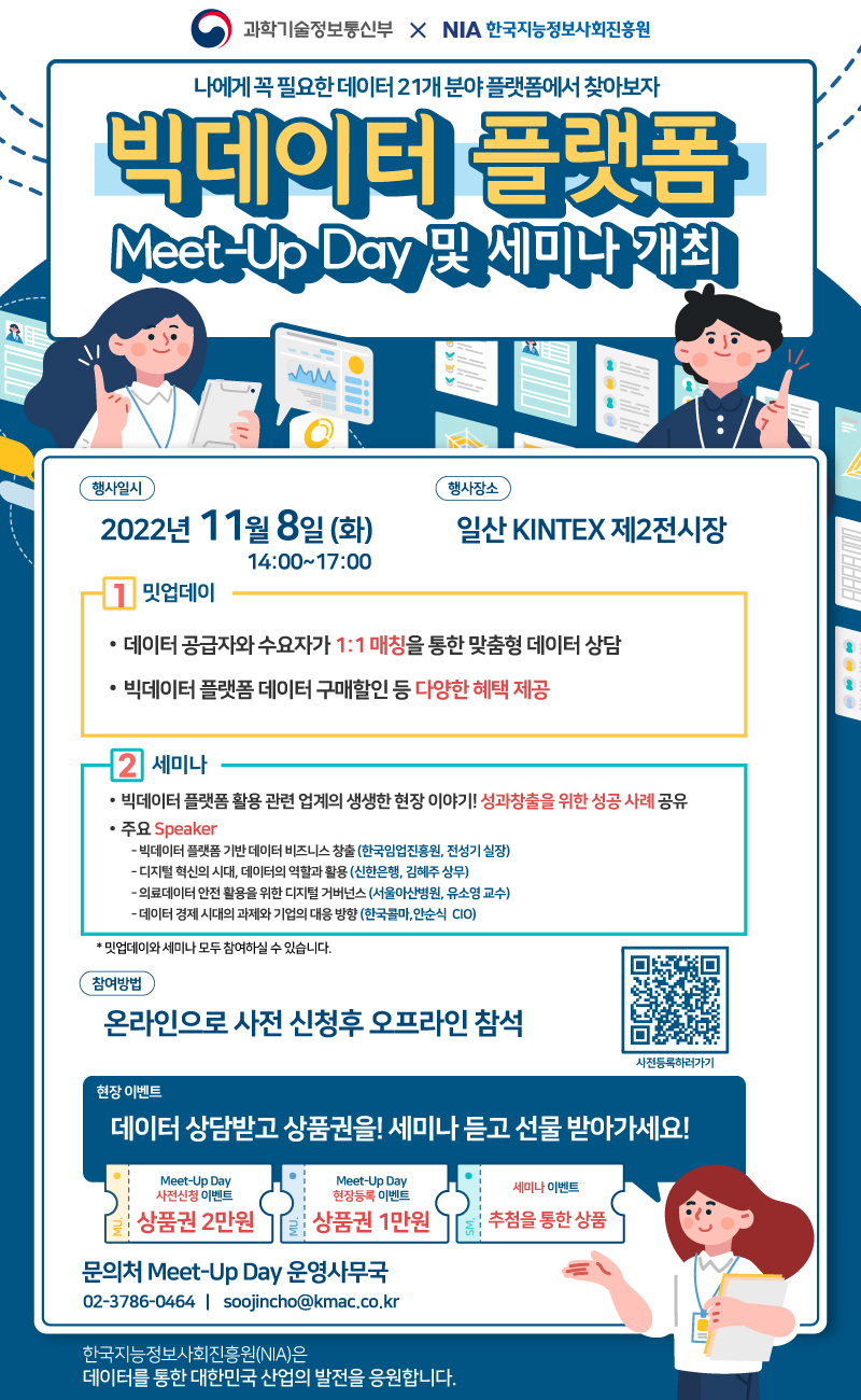 - 빅데이터 플랫폼 Meet-Up Day 및 세미나를 개최합니다. 많은 참여와 관심 부탁드립니다.