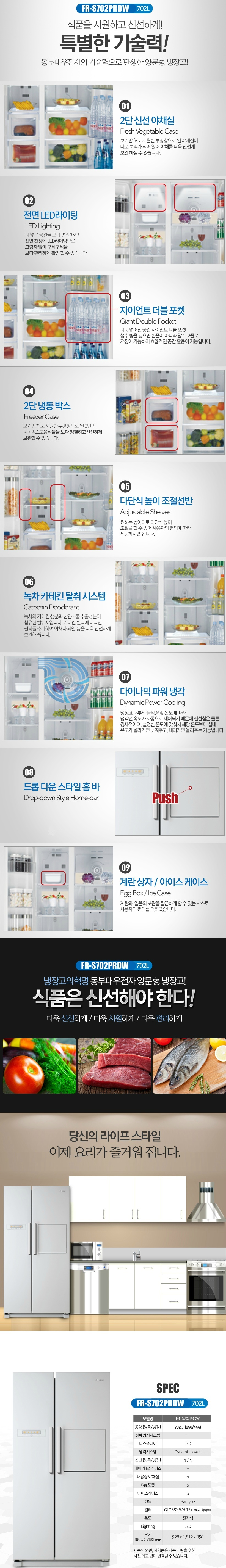 [리퍼브]동부대우 702L 양문형 냉장고 FR-S702PRDW