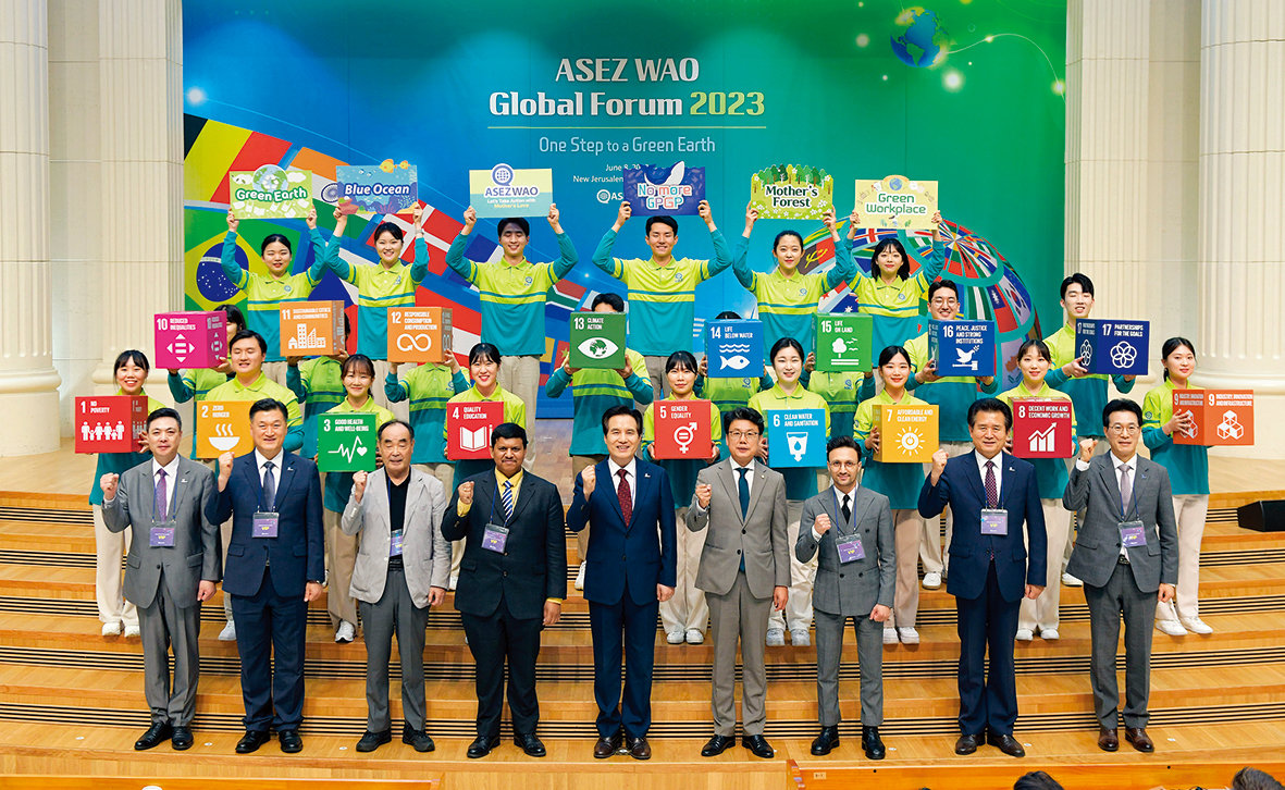 지난해 6월 기후변화 대응을 위한 ‘2023 ASEZ WAO 글로벌포럼’에 국회의원·교수·기업인 등 국내외 2300명가량이 참석했다. 하나님의 교회 제공