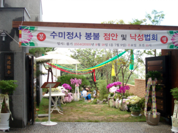 수미정사에서는 사찰을 중건하여 종범 큰스님을 법사로 모시고 봉불 점안 및 낙성 법회를 봉행하였습니다