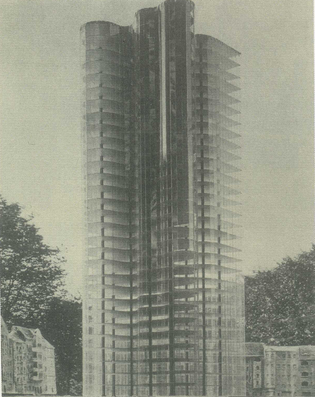 되었다. 첫 번째 프로젝트인 프리드히가 오피스빌딩안은 1921년에 있었던 현상 설계안으로 프리드리히역 맞은편에 자리잡은