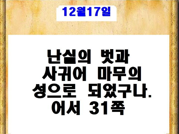 오늘의 어서 12.17 작성자朴靑春|작성시간25.12.17|조회수25 목록 댓글 0 글자크기 작게가 글자크기 크게가 다음검색 현재 게시글 추가 기능 열기 북마크 공유하기 신고 센터로 신고 댓글 댓글 0 댓글쓰기 답글쓰기 댓글 리스트