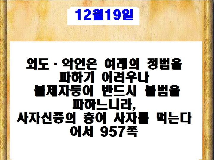 오늘의 어서 12.19 작성자朴靑春|작성시간25.12.19|조회수21 목록 댓글 0 글자크기 작게가 글자크기 크게가 다음검색 현재 게시글 추가 기능 열기 북마크 공유하기 신고 센터로 신고 댓글 댓글 0 댓글쓰기 답글쓰기 댓글 리스트