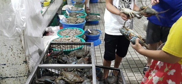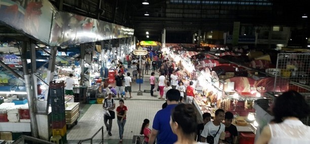 해물 육류등을 사서 바로 옆에 똑같이 담파라는 푸드코트와 식당이 한공간에 모여있는 아주 넓은 장소가 같이 있어 쿠킹비만 받고 원하는 대로 해물 및 육류를 즉석 요리도 해주기때문에 좋습니다