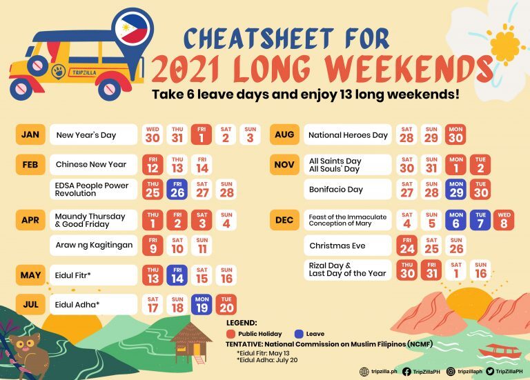 2021년 필리핀 공휴일 징검다리 공휴일 확인하기 [사진출처: 구글]
