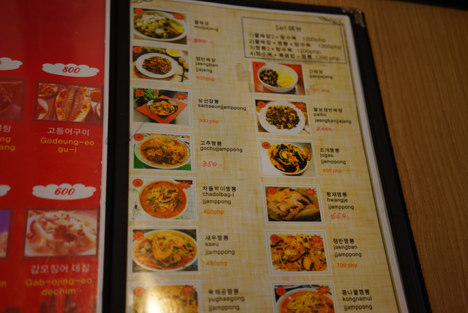필리핀의 한 중식당, 삼선짬뽕이 350페소로 약 8800원