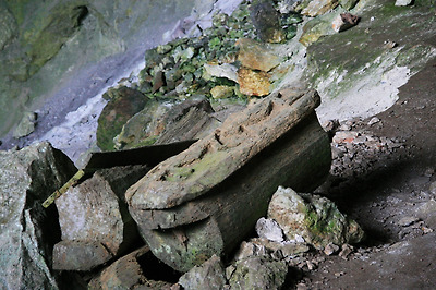 동굴 입구에 관들이