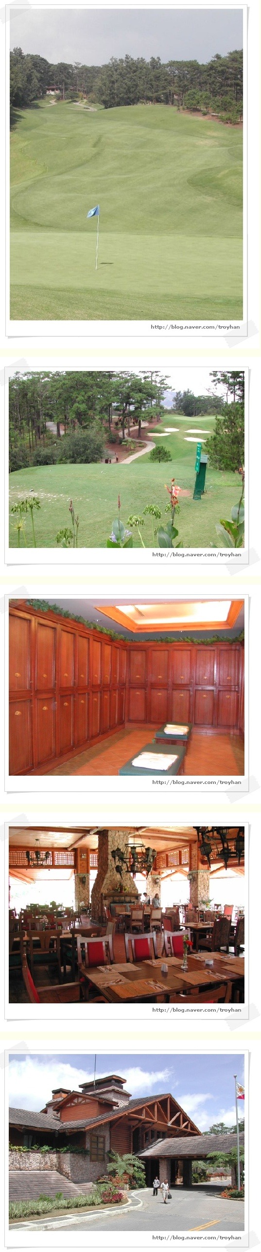 필리핀에서 처음으로 스코틀랜드 BENT잔디(버뮤다 잔디의 일족)로 그린을 이루고 있으며 한국 골퍼들에게 익숙한 업다운이 있으며 서늘한 기후에 맞게 필리핀에서는 찾아 보기 힘든 소나무 밭으로 둘러 쌓여 있어 그 서늘한 분위기를 유지시켜 줍니다. 라운딩을 하고 나오신 손님들의 이야기를 들어보면 날씨가 너무 적당하여 땀이나지 않아 쾌적하게 칠수 있었다고 좋아합니다.