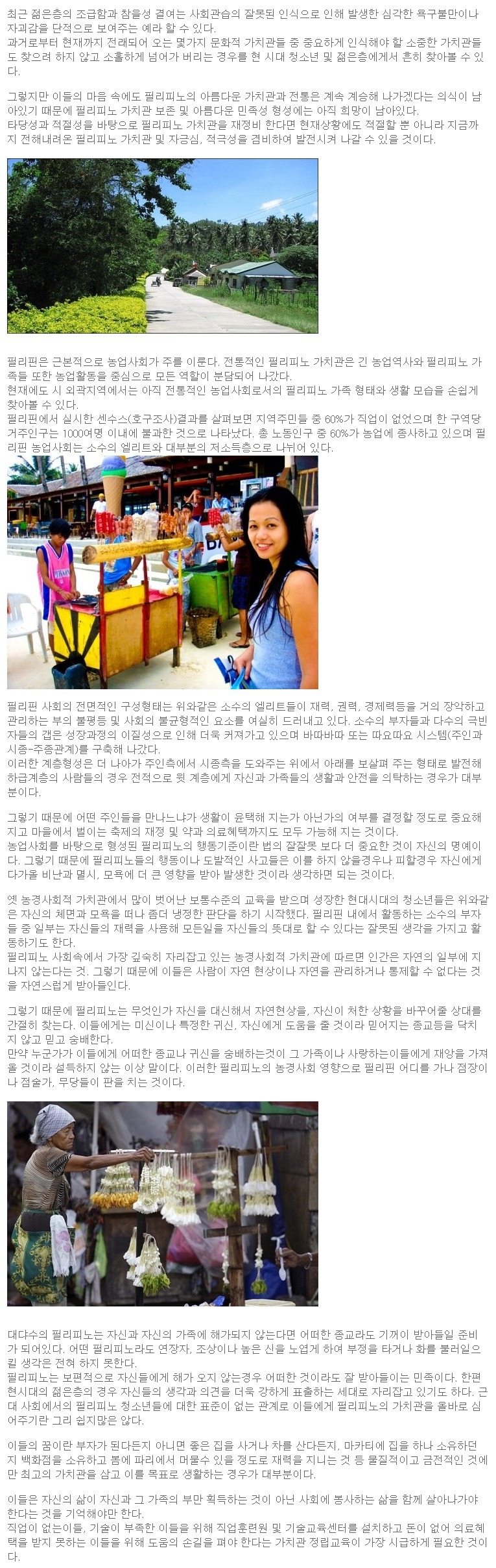 필리피노 가치관과 현대의 젊은세대 작성자유노바교|작성시간17.01.22|조회수157 목록 댓글 0 글자크기 작게가 글자크기 크게가 다음검색 현재 게시글 추가 기능 열기 북마크 공유하기 신고 센터로 신고 댓글 댓글 0 댓글쓰기 답글쓰기 댓글 리스트