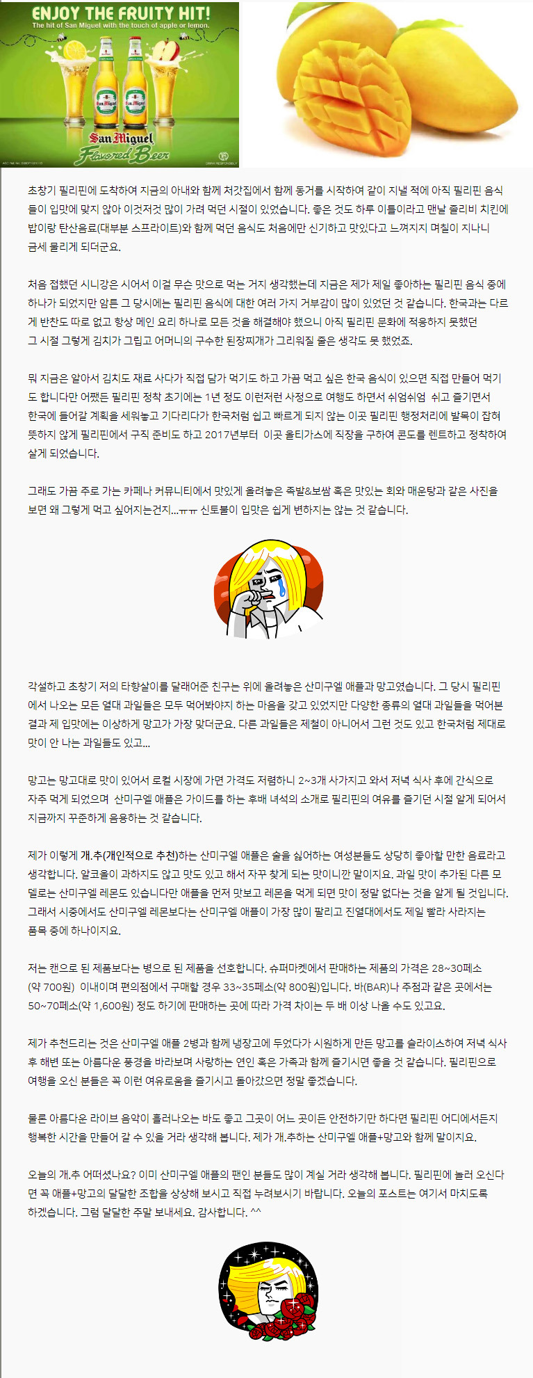 필리핀생활의 활력소 산미구엘 애플 +망고 작성자바기오현지인|작성시간19.08.14|조회수172 목록 댓글 0 글자크기 작게가 글자크기 크게가 다음검색 현재 게시글 추가 기능 열기 북마크 공유하기 신고 센터로 신고 댓글 댓글 0 댓글쓰기 답글쓰기 댓글 리스트