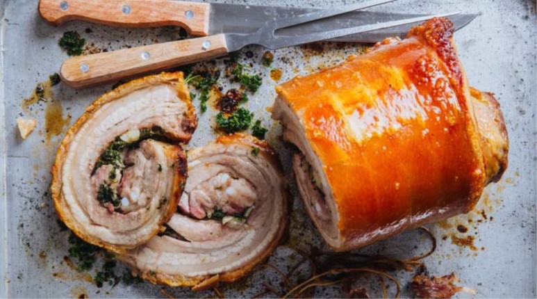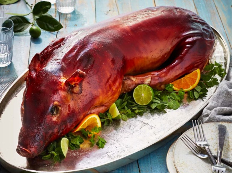 애저를 마늘, 오레가노, 소금, 후추, 강황, 오일 등에 8시간 동안 양념을 해서 대나무 막대 또는 최 막대에 꽂고
