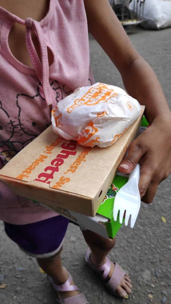 필리핀 마닐라의 대표적 빈민지역인 톤도에 피딩을 하러 오는 단체들도 가끔 졸리비를 포장해와서 나눠주기도 하는데요