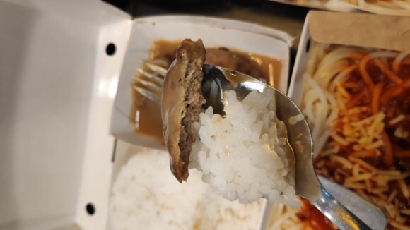 가격이 저렴할 뿐만 아니라 맛있고 밥 고기 버섯을 함께 먹을 수 있는 버거스테이크로~♡