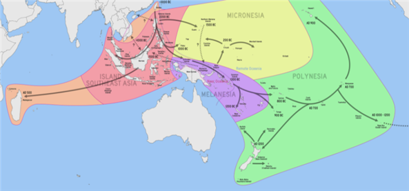Austronesian(남태평양인)이 역사적으로 거주했던 모든 장소에서 발견되는