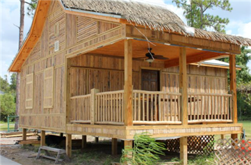 일반적으로 주변에서 쉽게 찾을 수 있는 목재, 대나무로 기둥을 세운 후 야자 잎이나 코코넛 잎으로 엮은 지붕을 올립니다.