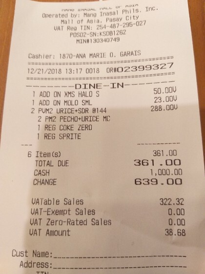 2인 361페소... 저렴하게 한끼 든든하게 먹을 수 있죠 도전해 보세요!!