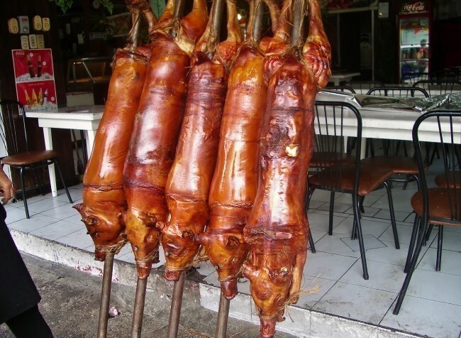 필리핀의 대표적 잔치음식 중의 하나인데, 쉽게 말해 통돼지구이라 하면 이해가 쉽게 될 것이다. 특징은 새끼돼지를 사용한다는 것인데 특유의 소스를 돼지껍질 부위에 발라가면서 굽는게 또 다른 특징이다. 마닐라에서는 Lydia Lechon이 유명하다. 그러나 레촌이라는 단어는 통돼지구이에만 쓰는 것이 아니라 오히려 이 말은 통구이를 의미한다고 하는 편이 맞으며, 예를 들어 통닭구이는 레촌 마녹이라 한다.