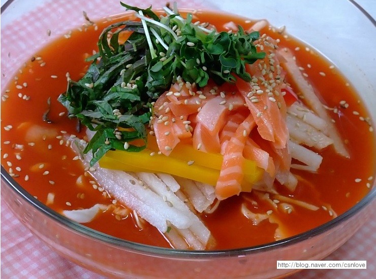 이렇게 야채와 함께 올리면 아주 먹음직스런 물회가 됩니다. 맛있어 보이죠....ㅋㅋ