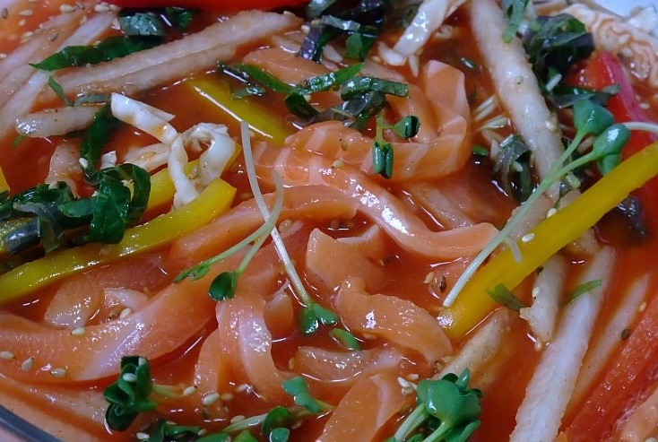 오늘 음식은 연어회에 대해 소개 하겠습니다.