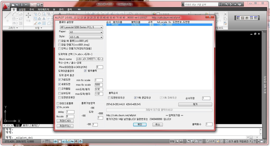 설정 완료 하고 확인 > 캐드 종료 > 캐드 실행 > allplot 실행을 해보면!!!!!!!!