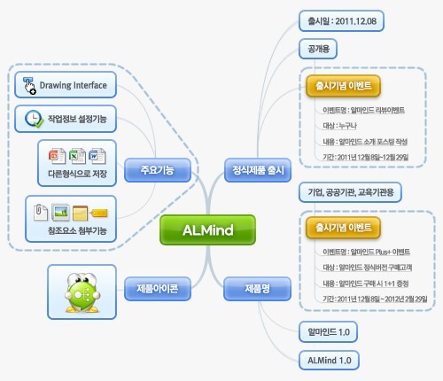 알마인드 출시와 함께 진행되는 이벤트, 주요기능, 제품 아이콘, 제품명까지 한눈에 볼 수 있습니다.