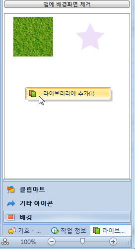 ('라이브러리'를 클릭하면 '라이브러리' 상단에 '배경' 메뉴를 클릭해 주세요~)
