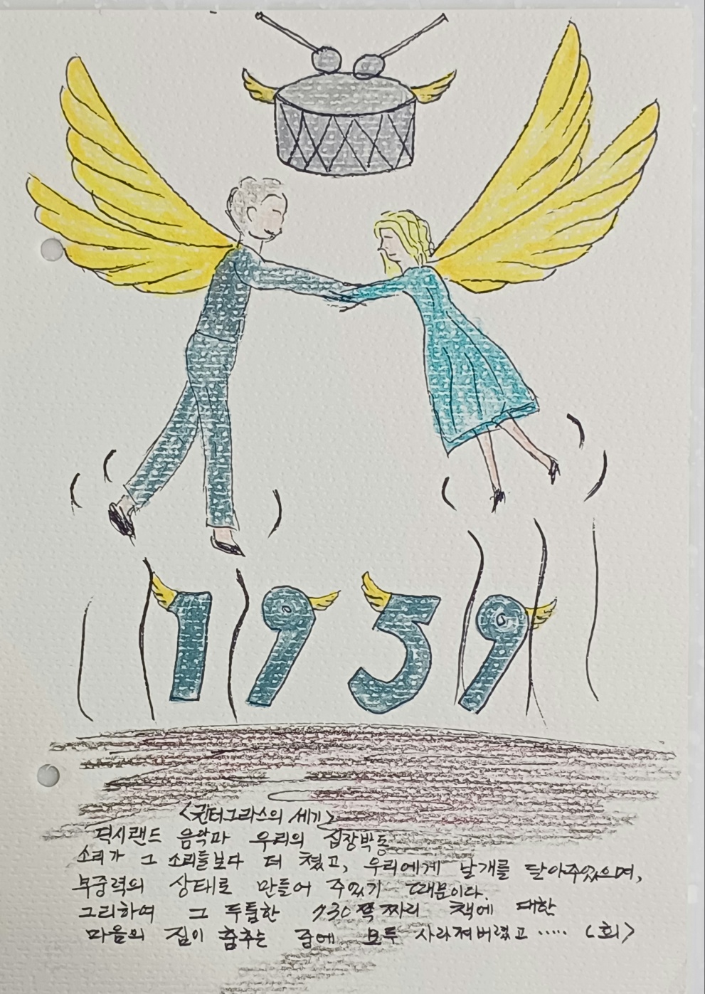 - 딕시랜드 음악과 우리의 심장박동 소리가 그 소리들보다 더 쳤고, 우리에게 날개를 달아주었으며, 무중력의 상태로 만들어 주었기 때문이다. 그리하여 그 두툼한 730쪽짜리 책에 대한 마음의 짐이 춤추는 중에 모두 사라졌버렸고...(희)